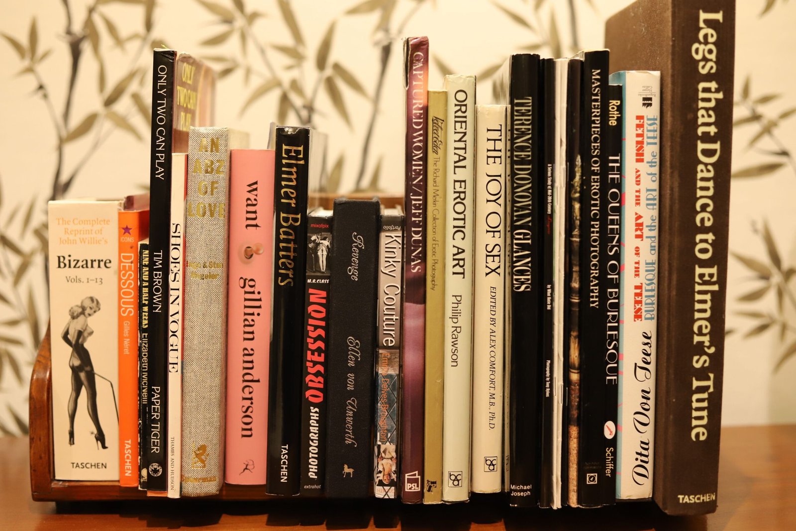 And you, my fellow hedonists, may well have a bedroom bookshelf, as we do — one that can be discreetly covered with a scarf when Granny comes to stay…