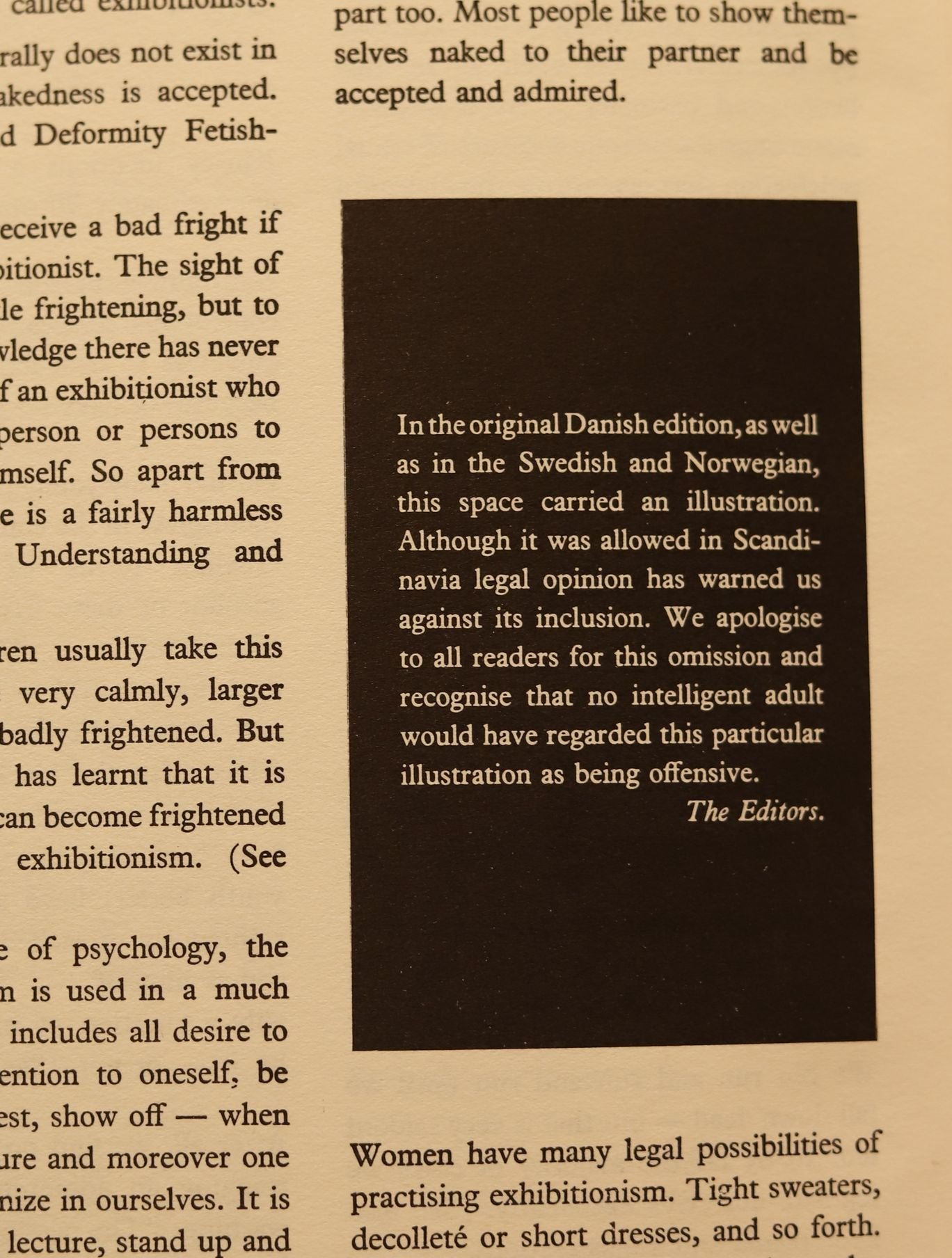 “The editors apologise to all readers for the omission & recognise that no intelligent adult would have regarded this particular illustration as being offensive.“