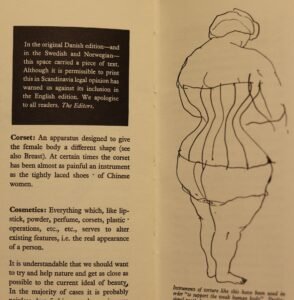 The articles are arranged, as the title suggests, in alphabetical order. Naturally, I made a beeline for Corset and Shoes (wouldn’t you?). It had charming line drawings and informative sections written in a clear, warm and self-deprecating tone.